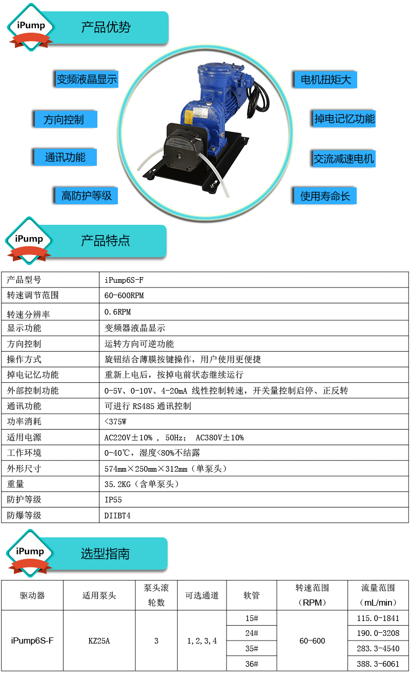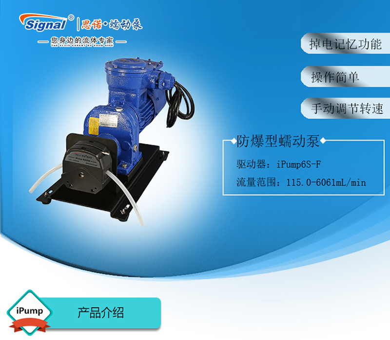 1.流量范圍:115.0-6061mL/min 2.免維護(hù)交流防爆減速電機(jī)驅(qū)動(dòng),變頻器調(diào)節(jié)轉(zhuǎn)速 3.電機(jī)扭矩大,可級(jí)聯(lián)雙泵頭 4.防爆等級(jí)DIIBT4,適合易燃易爆環(huán)境使用