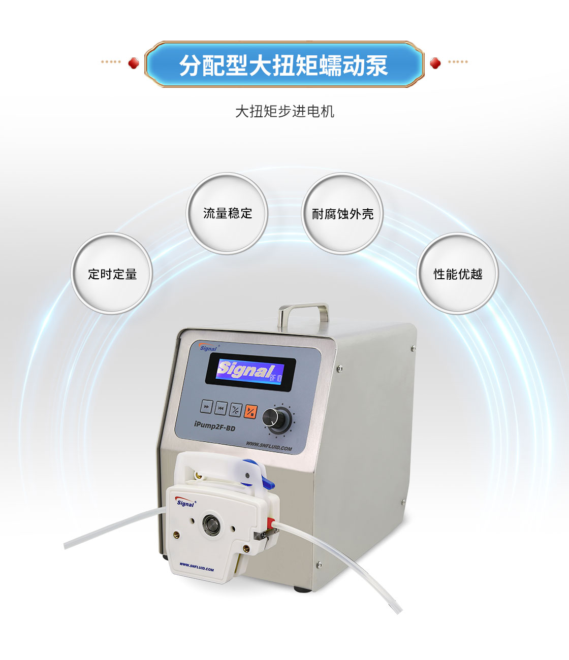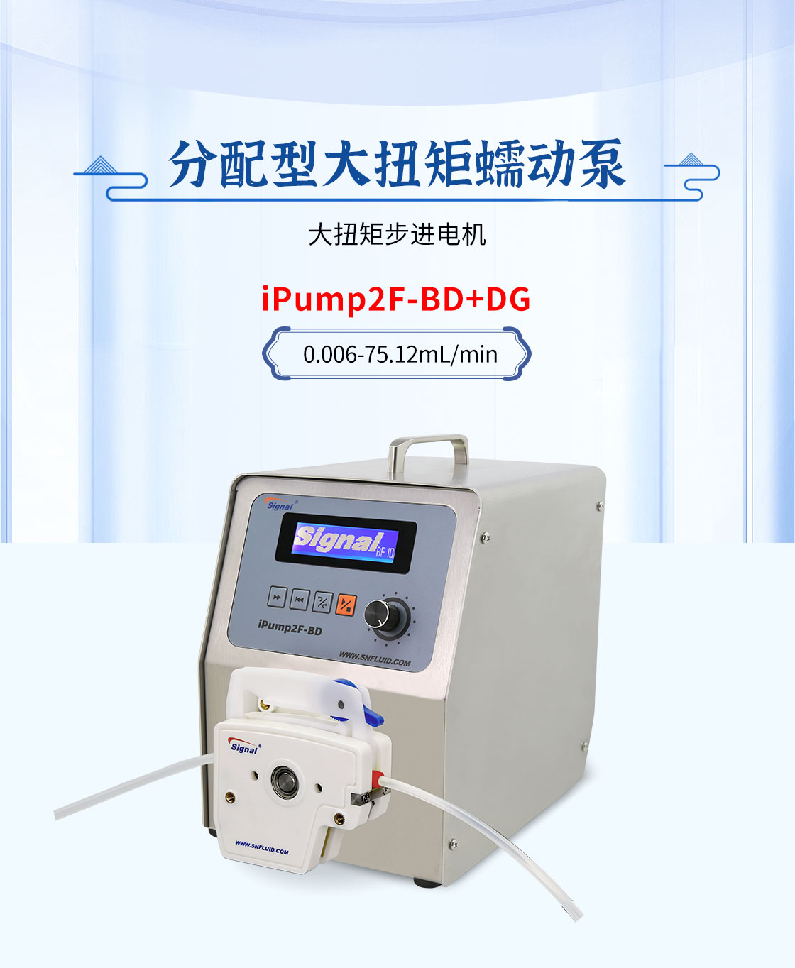 2.大扭矩步進電機驅(qū)動,適合多泵頭串聯(lián)使用;
