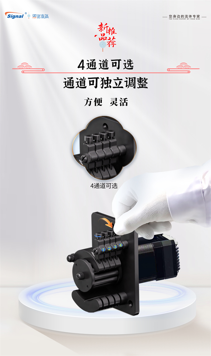 此系列蠕動泵產(chǎn)品采用12滾輪結(jié)構(gòu)設(shè)計,流體輸送平穩(wěn)均勻,有效減小脈沖,在緊湊結(jié)構(gòu)中蘊含著超越體積的強大性能,兼顧快捷、穩(wěn)定與高效。產(chǎn)品提供4個通道可選配置,通道均可獨立調(diào)整,用戶可根據(jù)實際情況選擇通道數(shù)量。