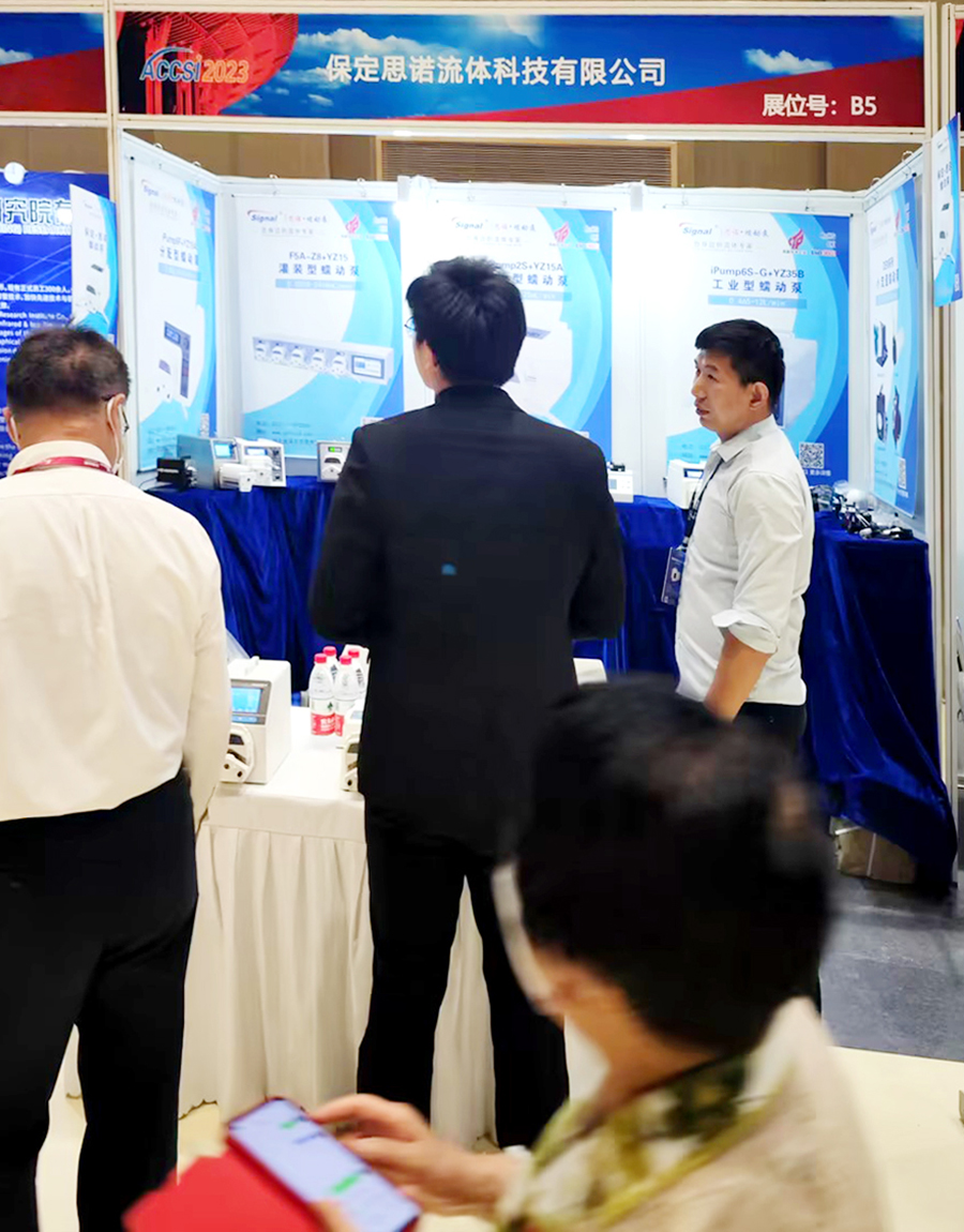 保定思諾流體展位前吸引了眾多參觀者前來咨詢與交流,思諾同事熱情耐心的講解本公司的產品實力與核心競爭力。眾多參觀者表現出了對思諾蠕動泵的濃厚興趣,大家紛紛駐足觀看,互相探討,現場人聲鼎沸,保定思諾流體得到了更多人的稱贊與關注。